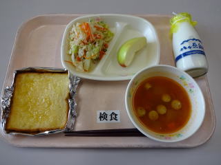 先生からのリクエスト「ハニーレモントースト」を大喜びでいただきました。 かにかまサラダ,ミネストローネとの相性もよく,とてもどれも美味しかったです。 信州りんごのことも放送でよく聞いていました。 美味しく元気もりもりになる給食をいつもありがとうございます。 |