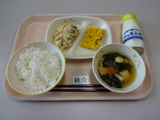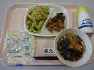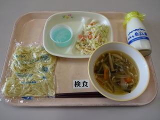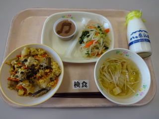 五目ソフトめんは具がたっぷりで,とても美味しかったです。 アップルパイもとても美味しかったです。1年生の中には,ちょっと大きすぎたように感じた子もいたようです。 ごちそうさまでした。 |