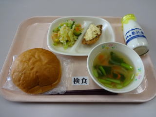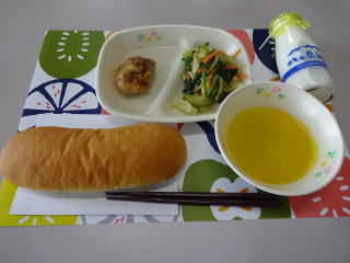 フィッシュバーガーがサクサクフワッとして,子どもたちも笑顔で頬張っていました。タルタルソースもたっぷりで食べごたえがありました。 スープにさつまいもをたくさん入れてほしいと言う子もいて,秋の恵みを味わっていました。 ごちそうさまでした。 |