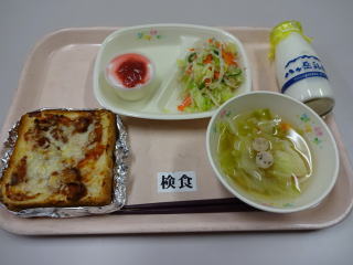 ピザトーストは,大好きな子が多く,美味しそうに頬張っていました。 フレンチサラダ,ポトフも,トーストに合っていて美味しかったです。 ヨーグルトゼリーは,ルバーブソースと一緒に食す初めての味なので,慣れていないこともあり,様々な反応でした。 ごちそうさまでした。 |