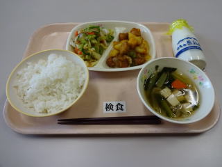 チーズハンバーグが大きくて食べごたえもあり,6年生の子たちには,大好評でした。 青さの味噌汁も,具だくさんで美味しかったです。 ごちそうさまでした。 |