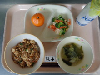 たっぷりのマーボー豆腐をかけることができて,どの子もとても美味しそうに食べていました。 ご飯の日ですが,いつもより食べ終わるのが早かったです。 中華和え,ブロッコリーのわかめスープいも具だくさんで,美味しかったです。 ごちそうさまでした。 |