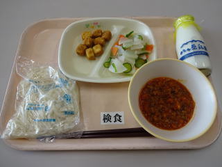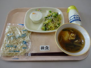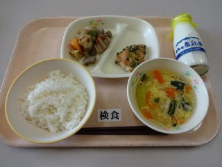 学校給食週間ということで,お昼の放送により耳を傾けている様子があります。 郷土食,伝統を大切にする給食の役割も知りながら,凍り豆腐のごま和えを美味しくいただきました。 五目にゅうめんも,よく進みました。 チョコチップマフィンも嬉しそうに頬張っていました。 ごちそうさまでした。 |