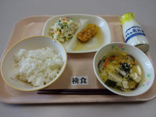 かにかまサラダが好きな子が多く,たくさんおかわりをしていました。 餅巾着もよく食べ,残食は少なかったです。 かみ応えのあるお餅だったので,喉のつまりもなくよかったです。 ごちそうさまでした。 |